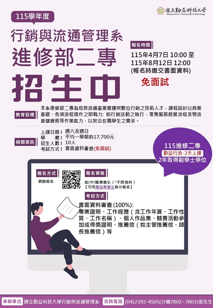 115學年度行銷與流通管理系進修部二專招生!!!
