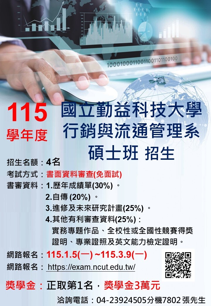 115學年度行銷與流通管理系碩士班招生!!!(延長報名至3/9)
