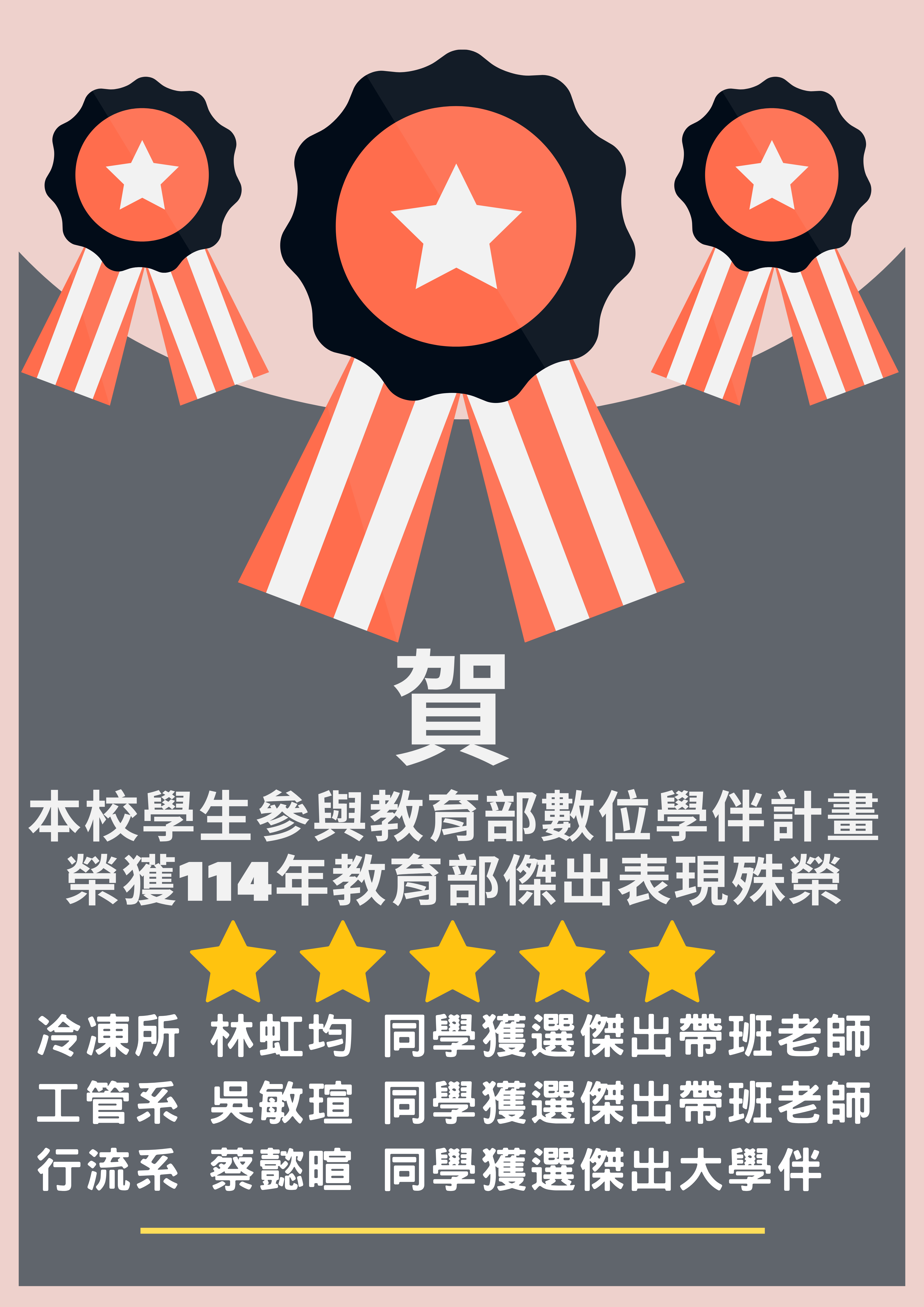 賀!本系四流三甲蔡懿暄同學榮獲教育部114年數位學伴計畫傑出大學伴